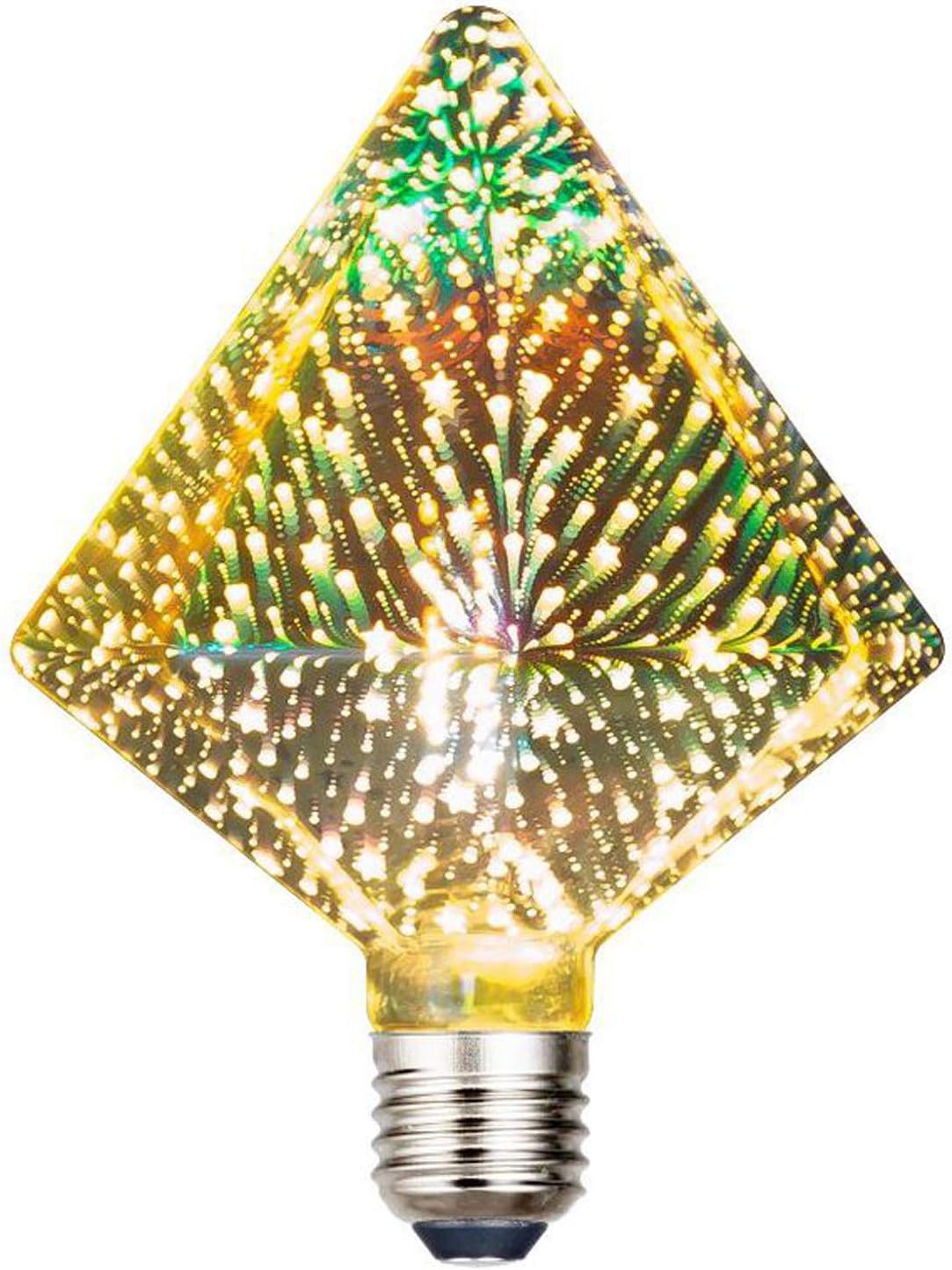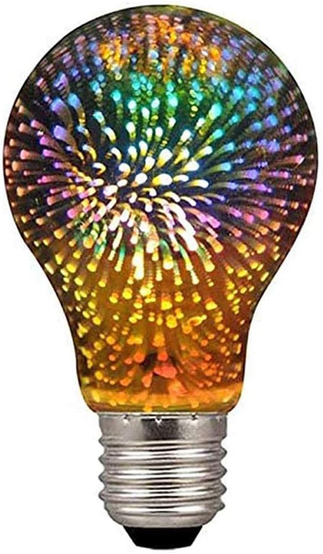 3D Decoration LED Light Bulb E27 Vintage Night Light 85-265V A60 ST64 G80 G95 Star Fireworks Edison Bulb Lamp Holiday Novelty Decoration Lighting Specifications: Base: E27 3D LED Bulb Input Voltage: 85-265V 50/60Hz Output Voltage: 3.2V Wattage: 4W Luminous flux:125LM/W Material:Silver Plated Glass Cover Color Temperature: 2200K-2400K Yellow View Angle: 360 Degree Color rendering index: 80-90 Size: ST64 3D Bulb:64*135mm G95 3D Bulb: 95*130mm A60 3D Bulb:60*105mm G80 3D Bulb:80*115mm Brick 3D Bulb:125*165mm Star 3D Bulb:140*180mm LOVE Heart 3D Bulb:125*170mm Christmas tree 3D Bulb:85*235mm Diamond-P 3D Bulb:95*135mm