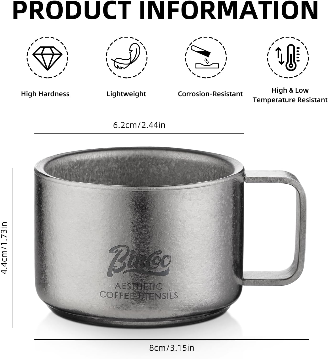 What's in the Box: 1 x Bincoo Pure Titanium Cup (240ml / 8oz) 1 x Premium Gift Box 1 x Care Instructions