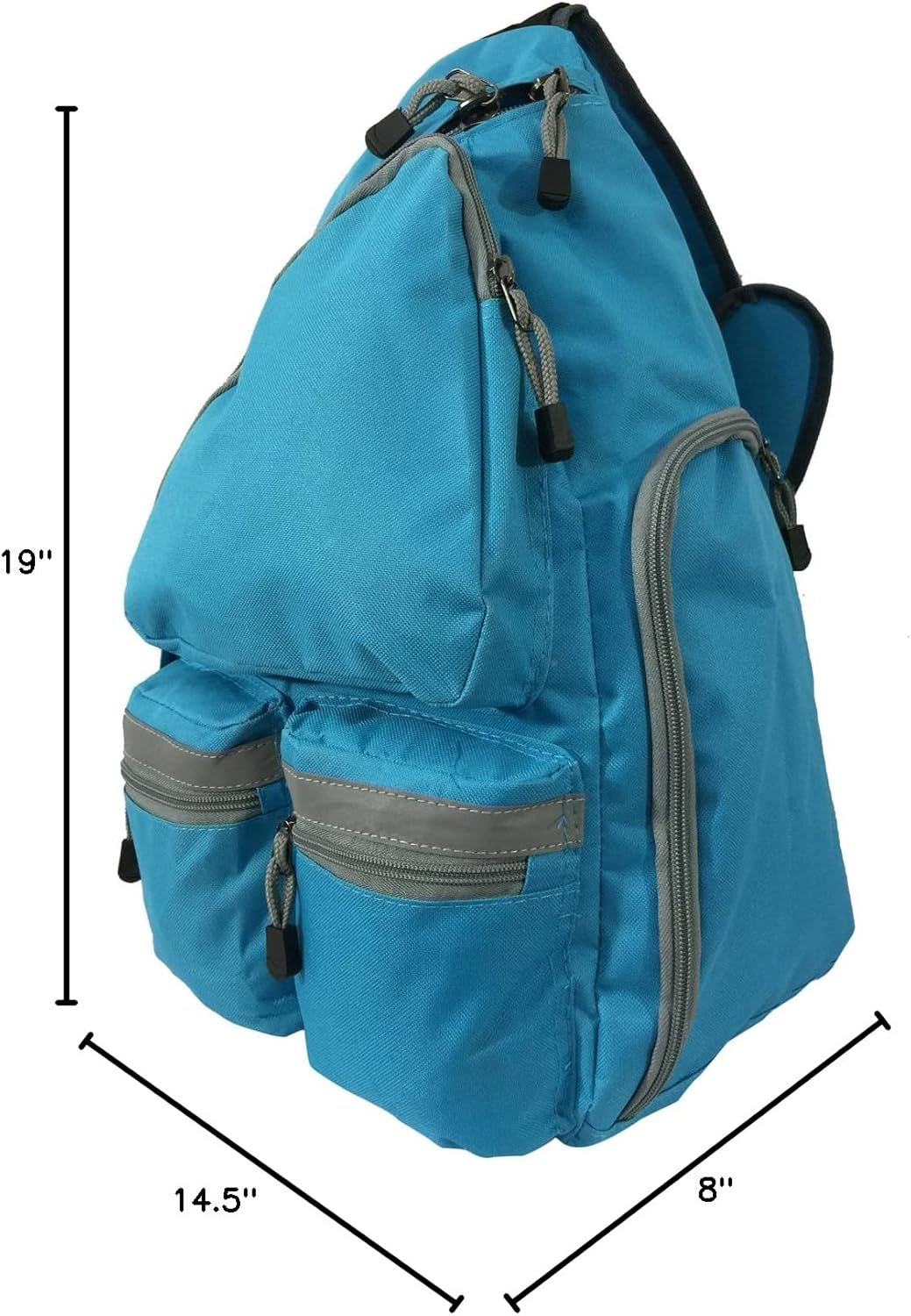 Product DescriptionBright color material with retro-reflective stripes to make you or your children safe when walking at night. Comfortable padded shoulder strap with cell phone pocket fits most standard cellphones or keys. Zippered lower front pockets with safety reflective stripe. Large zippered side pocket Large size #10 zipper on main compartment. Reinforced shoulder strap buckles. Large zippered front pocket. All zippers with zipper pull string and pull tab. "K-CLIFFS" logo printed on main compartment flap. Padded back panel. Adjustable Padded extra wide shoulder strap. This style is a sling backpack, cross body style with only ONE shoulder strap.SpecificationsMaterial: Ballistic Cordura FabricBackpack Dimension: 19"x14.5"x8"Note: The manufacturer warranty on this product lasts 30 days from your date of purchase. Manufacturer warranties cover only manufacturer defects and zipper mechanism damages from normal intended usage.