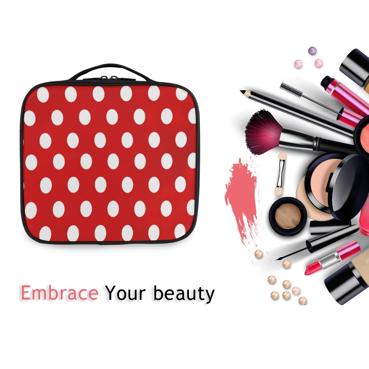 Makeup BagPrepare material : made of Oxford fabric and lining-nylon, water-resistant and easy to clean, shockproof, smooth and nice touch.Perfect Size: 9.8" x 3.6"x 8.9"/25 x 9.1 x 22.5cm(LxWxH), this makeup bag have enough roomy to storage your makeup, hairbrushes, lip gloss,like lipstick, makeup brushes, makeup palettes, nail art tools and so no.Design: Dual zippers closure, make it more convenient and safe to take.Function1.This makeup bag have several makeup brushes slots and compartments, you can keep your makeup and makeup brushes are tidy and neat.2.Do your makeup anywhere, suitable for quick trips and business trips, suitable for travel.3.This unique design will make you different.