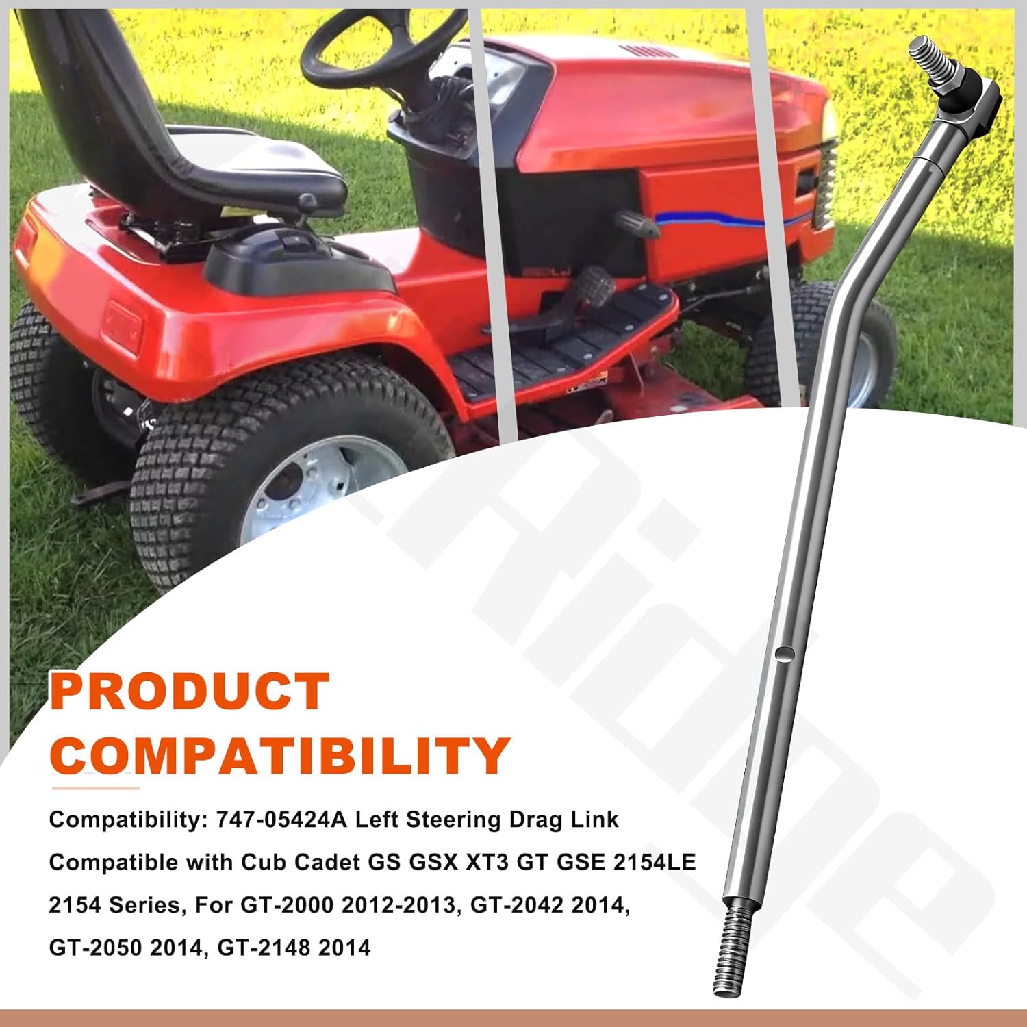 Part Number: Left Steering Drag Link Replace 747-05424A, 742-05620 Compatibility: 747-05424A Left Steering Drag Link Compatible with Cub Cadet GS GSX XT3 GT GSE 2154LE 2154 Series, For GT-2000 2012-2013, GT-2042 2014, GT-2050 2014, GT-2148 2014, GTX-2000 2012-2013, GTX-2100 2012-2013, GTX-2154 2014, XT3-GS 2015, XT3-GSE 2015, XT3-GSX 2015 Model